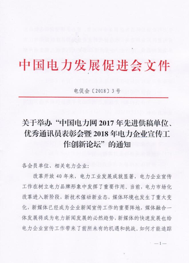 中國電力網(wǎng)2017年先進供稿單位、優(yōu)秀通訊員表彰會暨2018年度電力企業(yè)宣傳工作創(chuàng)新論壇