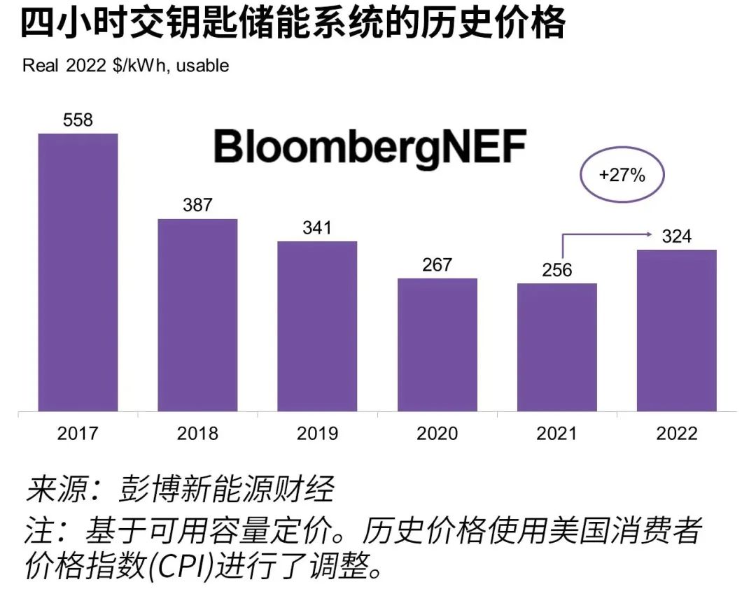 儲(chǔ)能系統(tǒng)成本長期內(nèi)將繼續(xù)下降,但從短期來看,原材料限制、高勞動(dòng)力成本和來自交通運(yùn)輸行業(yè)的競爭性需求將使儲(chǔ)能價(jià)格高企。來自新入局者的競爭可能會(huì)降低系統(tǒng)集成和開發(fā)商的利潤率,使2023年成本較2022年略有下降。