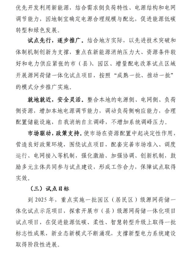 試點(diǎn)目標(biāo):到2025年,重點(diǎn)實(shí)施一批園區(qū)(居民區(qū))級(jí)源網(wǎng)荷儲(chǔ)一體化試點(diǎn)示范項(xiàng)目,探索開(kāi)展市(縣)級(jí)源網(wǎng)荷儲(chǔ)一體化項(xiàng)目試點(diǎn)項(xiàng)目,在促進(jìn)能源低碳、柔性、智慧轉(zhuǎn)型升級(jí)上取得一批標(biāo)志性成果,新業(yè)態(tài)新模式不斷涌現(xiàn),支撐新型電力系統(tǒng)建設(shè)取得階段性進(jìn)展。