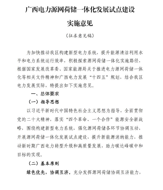 《廣西電力源網(wǎng)荷儲(chǔ)一體化發(fā)展試點(diǎn)建設(shè)實(shí)施意見(jiàn)(征求意見(jiàn)稿)》發(fā)布
