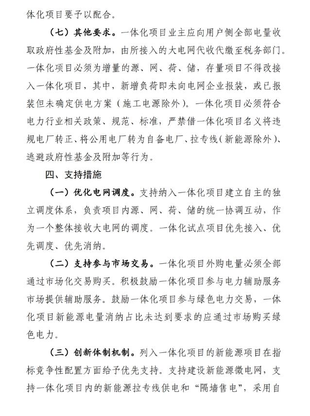 一體化項(xiàng)目外購(gòu)電量必須全部通過(guò)市場(chǎng)化交易購(gòu)買(mǎi)。積極鼓勵(lì)一體化項(xiàng)目參與電力輔助服務(wù)市場(chǎng)提供輔助服務(wù)。鼓勵(lì)一體化項(xiàng)目參與綠色電力交易,一體化項(xiàng)目新能源電量消納占比未達(dá)到要求的應(yīng)通過(guò)市場(chǎng)購(gòu)買(mǎi)綠色電力。