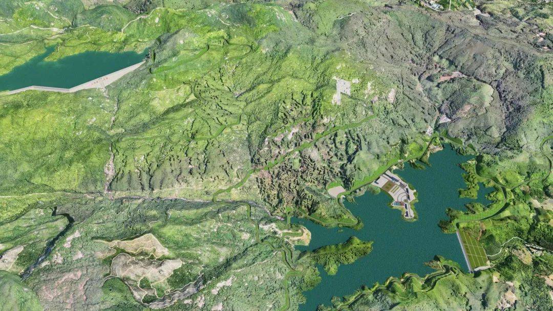 下水庫工程是抽水蓄能電站的主體工程之一,位于險橋和烏珩兩個山間盆地,正常蓄水位133.5m,死水位108.0m,設(shè)計庫容2084.8萬m³,調(diào)節(jié)庫容1824.4萬m³,集雨面積達(dá)14.64km²,天然成庫條件好。下水庫建設(shè)內(nèi)容主要包括下水庫大壩、溢洪道、導(dǎo)流洞及放水底孔、庫周防滲、庫岸防護(hù)和環(huán)庫道路,建成后為電站提供龐大的蓄水容器,并環(huán)抱電站永久業(yè)主營地,將形成一波萬碧、山水相映的秀麗景觀。