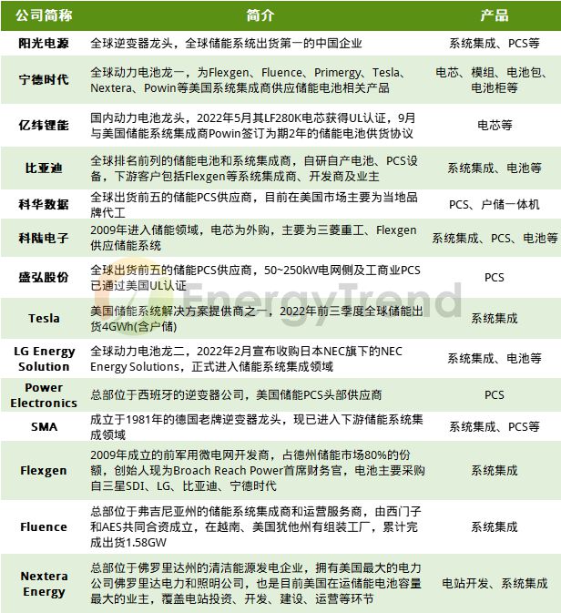圖:美國(guó)儲(chǔ)能市場(chǎng)主要參與者介紹