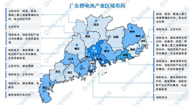 近年,廣東省不斷優(yōu)化鋰電池產(chǎn)業(yè)區(qū)域布局,重點(diǎn)建設(shè)珠江口東岸儲(chǔ)能電池產(chǎn)業(yè)集聚區(qū),珠江口西岸儲(chǔ)能電池產(chǎn)業(yè)集聚區(qū),正極材料集聚區(qū),鋰電硅碳負(fù)極材料集聚區(qū),鋰電隔膜生產(chǎn)制造基地,電解液專(zhuān)業(yè)園區(qū),銅箔、鋁箔、聚偏二氟乙烯膜等輔助材料集聚區(qū),儲(chǔ)能控制產(chǎn)品及系統(tǒng)集成、先進(jìn)裝備制造集聚區(qū),電池回收利用產(chǎn)業(yè)集聚區(qū)等。