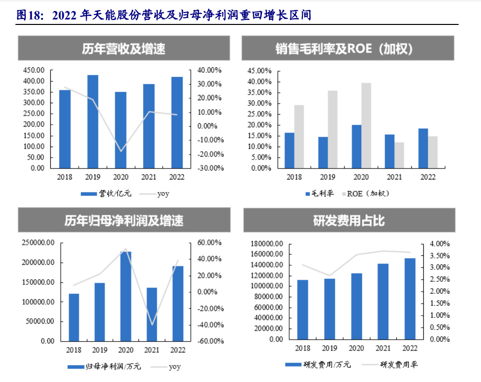 天能股份是一家以電動輕型車動力電池業(yè)務(wù)為主,集電動特種車動力電池、新 能源汽車動力電池、汽車起動啟停電池、儲能電池、3C 電池、備用電池、燃料電池 等多品類電池的研發(fā)、生產(chǎn)、銷售為一體的國內(nèi)電池行業(yè)領(lǐng)先企業(yè)。 財務(wù)方面近期天能股份業(yè)績逐漸回暖, 2022 年全年天能股份實現(xiàn)營業(yè)收入 418.82 億元,同比增長 8.18%;歸母凈利潤 19.08 億元,同比增長 39.35%。