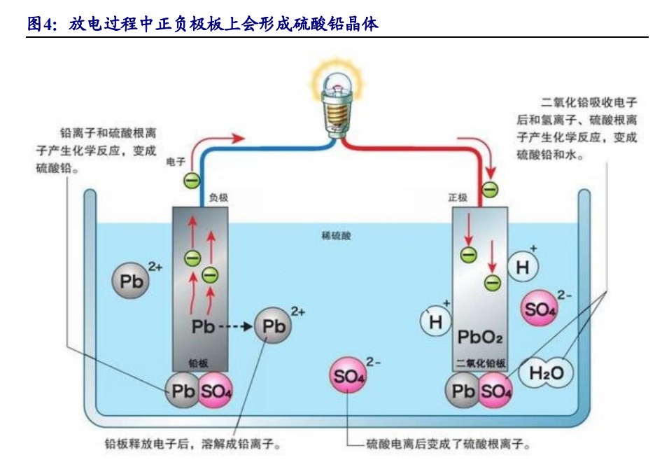 鉛酸電池包含正極板組、負(fù)極板組、隔板、電解液、容器等結(jié)構(gòu)組成。正極板 活性物質(zhì)為二氧化鉛,負(fù)極板主要活性物質(zhì)為鉛。放電過程中正負(fù)極板上會形成細(xì) 小松軟的硫酸鉛晶體,充電過程中硫酸鉛歧化為鉛與二氧化鉛。