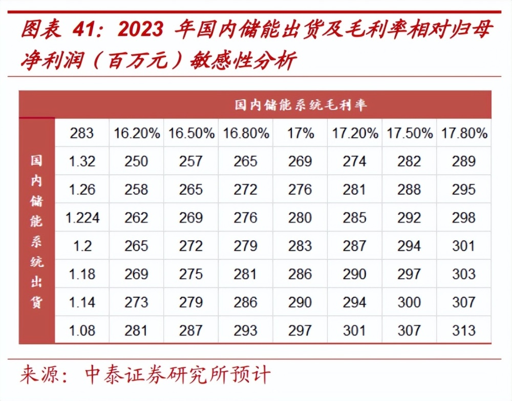 同時,新產能逐步落地,2022 年 7 月, 公司宜春儲能生產基地一期年產能 3GWh 正式投產,預計二期 5GW 產 能于 23 年底開始投產,待項目滿產后總產能達 8GW。我們預計 22、23、 24 年國內儲能系統(tǒng)出貨量分別為 0.06、1.20、2.40GWh,海外儲能系 統(tǒng)出貨量分別為 0.14、1.80、3.50GWh。因儲能系統(tǒng)價格調整滯后于電 池價格調整,在電池降價過程中儲能系統(tǒng)盈利提升,預計國內的儲能業(yè) 務毛利率分別為 15%、17%、19%;海外較國內毛利率略高。