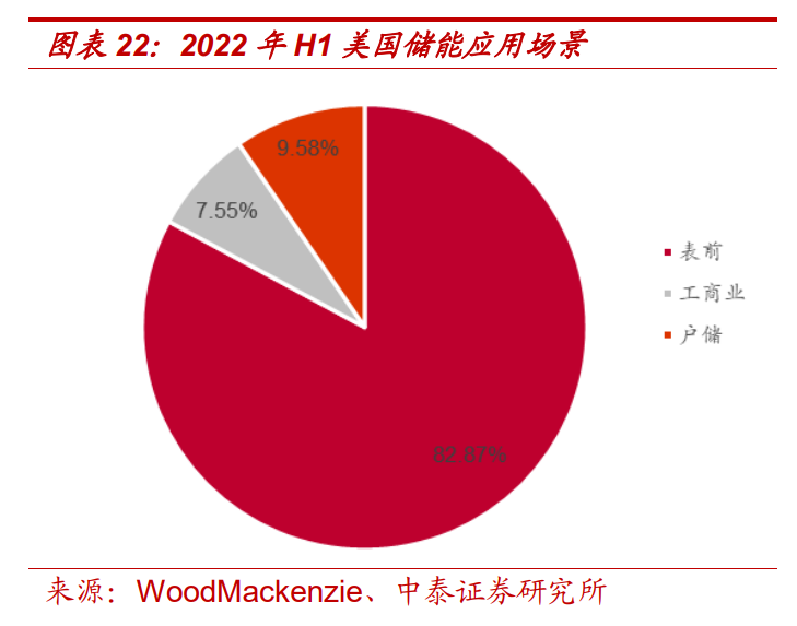 1) 美國:儲能維持高景氣,裝機量持續(xù)增長。新型儲能維持高增速,2022 年 H1 裝機量高企。根據(jù) CNESA 數(shù)據(jù)顯 示,2022H1 美國儲能新增規(guī)模達 2.3GW/5.9GWh,同比增長 188%、 157%。其中表前儲能貢獻了主要裝機量,2022H1 表前儲能新增裝機 量達 1.9GW/5.0GWh,工商業(yè)為 171MW/393MWh,戶儲為 217MW/ 517MWh。美國儲能產業(yè)機制成熟,預計將保持高景氣,根據(jù) WoodM ackenzie 預計,美國 2023-2026 年新增裝機量分別為 28.4GWh、45. 6GWh、50.7GWh、52.4GWh,預計 2022-2026 年新增裝機量 CAGR 可達 40.36%。
