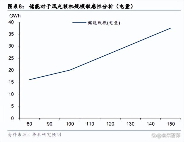 市場化并網(wǎng)項(xiàng)目配儲(chǔ)要求更高,后續(xù)儲(chǔ)能裝機(jī)增速預(yù)計(jì)將高于新能源增速。經(jīng)過我們預(yù)測(cè), 在所有電站均為平價(jià)電站,保障性并網(wǎng)項(xiàng)目配儲(chǔ) 10%,儲(chǔ)能時(shí)長 2 小時(shí),市場化并網(wǎng)項(xiàng)目 配儲(chǔ) 15-20%,儲(chǔ)能時(shí)長 4 小時(shí),全國保障性并網(wǎng)項(xiàng)目總規(guī)模 100GW 的假設(shè)下,風(fēng)光并網(wǎng) 總規(guī)模超過 100GW 后,儲(chǔ)能規(guī)模隨著風(fēng)光并網(wǎng)規(guī)模增長的速度將加快。具體到市場化并網(wǎng) 項(xiàng)目配儲(chǔ) 17.5%時(shí),當(dāng)風(fēng)光并網(wǎng)規(guī)模低于 100GW,并網(wǎng)規(guī)模每增加 10GW 儲(chǔ)能規(guī)模將增 加 1GW,當(dāng)風(fēng)光規(guī)模高于 100GW,并網(wǎng)規(guī)模每增加 10GW 儲(chǔ)能規(guī)模將增加 1.75GW。