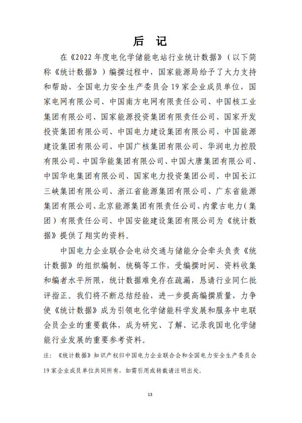 2022年度電化學(xué)儲能電站行業(yè)統(tǒng)計數(shù)據(jù)