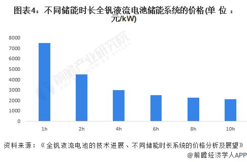 綜合考慮殘值后,儲能時長分別為 4h、10h 的全釩液流電池系統(tǒng)實際成本僅為 1875 元 /kWh、1020 元 /kWh。因此,從生命周期角度來講,全釩液流電池具有性價比高、經(jīng)濟性好、環(huán)境負(fù)荷低的優(yōu)勢。