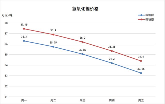 上周,3月27日-3月31日,鋰價繼續(xù)下跌。其中,電池級碳酸鋰價格下探至23.8萬元/噸,氫氧化鋰價格低至33.25萬元/噸,六氟磷酸鋰低至10.15萬元/噸。