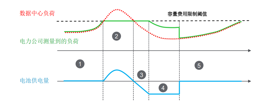 施耐德在發(fā)表的一篇白皮書(shū)中提到儲(chǔ)能型UPS 能以非常規(guī)則的方式調(diào)節(jié)電網(wǎng)所測(cè)量到的負(fù)荷。如此可以將數(shù)據(jù)中心峰值電力容量需求最小化,使用UPS之前儲(chǔ)存好的電量,避免在用電高峰期支付高價(jià)電費(fèi),降低容量費(fèi)用。