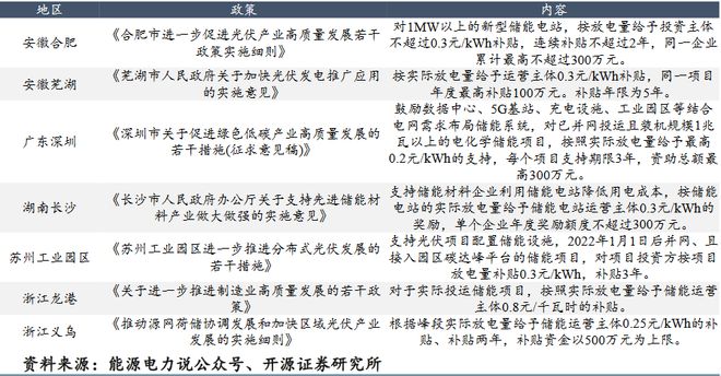 圖:部分工商業(yè)儲能補(bǔ)貼政策
