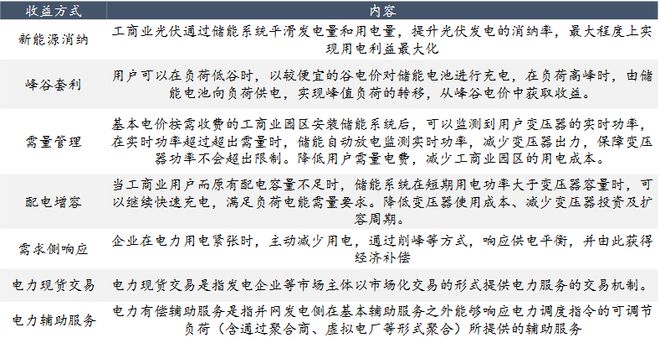 同時(shí),工商業(yè)儲能電站收益方式相對多樣,具有保障分布式能源消納、峰谷套利、需量管理、配電增容、需求側(cè)響應(yīng)、參與電力現(xiàn)貨市場交易、參與電力輔助服務(wù)等多種現(xiàn)存與潛在受益方式。