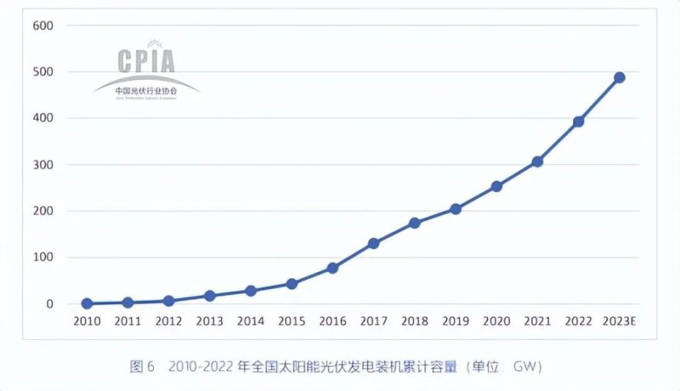 2020年9月,國家主席習(xí)近平在第七十五屆聯(lián)合國大會(huì)上鄭重宣布:“中國將提高國家自主貢獻(xiàn)力度,采取更加有力的政策和措施,二氧化碳排放力爭(zhēng)于2030年前達(dá)到峰值,努力爭(zhēng)取2060年前實(shí)現(xiàn)碳中和”,由此拉開了“雙碳”目標(biāo)這一新時(shí)代發(fā)展主題的帷幕。雙碳背景下,推動(dòng)能源革命、構(gòu)建以新能源為主體的新型電力系統(tǒng)成為全球共識(shí)。據(jù)中國光伏行業(yè)協(xié)會(huì)(CPIA)的統(tǒng)計(jì),2018年由于“531”光伏新政出臺(tái),淘汰落后中小企業(yè)產(chǎn)能,行業(yè)加速出清,國內(nèi)新增光伏裝機(jī)量44.3GW,同比下降16.4%。2019年光伏競(jìng)價(jià)政策出臺(tái)較晚、項(xiàng)目建設(shè)時(shí)間短,國內(nèi)光伏新增裝機(jī)再度下降至30.1GW,同比下降32%。2022年全國新增光伏并網(wǎng)裝機(jī)容量87.41GW,累計(jì)光伏并網(wǎng)裝機(jī)容量達(dá)到392.6GW,新增和累計(jì)裝機(jī)容量均為全球第一。全年光伏發(fā)電量為4,276億千瓦時(shí),同比增長30.8%,約占全國全年總發(fā)電量的4.9%。預(yù)計(jì)2023年光伏新增裝機(jī)量超過95GW,累計(jì)裝機(jī)有望超過487.6GW。