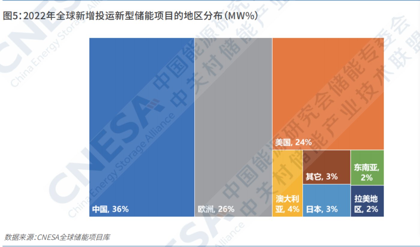 近年來(lái)新增投運(yùn)新型儲(chǔ)能項(xiàng)目地區(qū)主要在美國(guó)、歐洲和中國(guó),合計(jì)占全球市場(chǎng)高達(dá)80%。