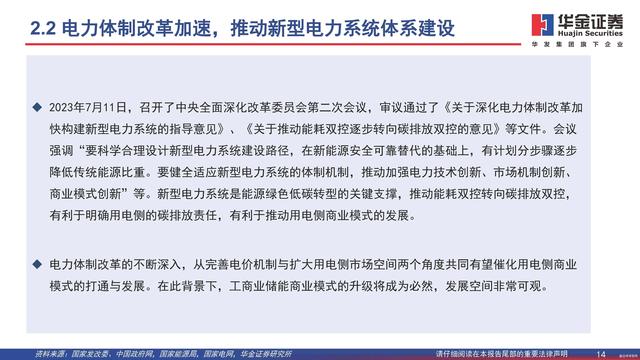 2023年7月11日,召開了中央全面深化改革委員會(huì)第二次會(huì)議,審議通過了《關(guān)于深化電力體制改革加快構(gòu)建新型電力系統(tǒng)的指導(dǎo)意見》、《關(guān)于推動(dòng)能耗雙控逐步轉(zhuǎn)向碳排放雙控的意見》等文件。會(huì)議強(qiáng)調(diào)“要科學(xué)合理設(shè)計(jì)新型電力系統(tǒng)建設(shè)路徑,在新能源安全可靠替代的基礎(chǔ)上,有計(jì)劃分步驟逐步降低傳統(tǒng)能源比重。要健全適應(yīng)新型電力系統(tǒng)的體制機(jī)制,推動(dòng)加強(qiáng)電力技術(shù)創(chuàng)新、市場機(jī)制創(chuàng)新、商業(yè)模式創(chuàng)新”等。新型電力系統(tǒng)是能源綠色低碳轉(zhuǎn)型的關(guān)鍵支撐,推動(dòng)能耗雙控轉(zhuǎn)向碳排放雙控,有利于明確用電側(cè)的碳排放責(zé)任,有利于推動(dòng)用電側(cè)商業(yè)模式的發(fā)展。