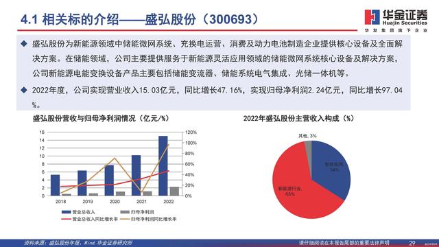 盛弘股份為新能源領(lǐng)域中儲(chǔ)能微網(wǎng)系統(tǒng)、充換電運(yùn)營、消費(fèi)及動(dòng)力電池制造企業(yè)提供核心設(shè)備及全面解決方案。在儲(chǔ)能領(lǐng)域,公司主要提供服務(wù)于新能源靈活應(yīng)用領(lǐng)域的儲(chǔ)能微網(wǎng)系統(tǒng)核心設(shè)備及解決方案,公司新能源電能變換設(shè)備產(chǎn)品主要包括儲(chǔ)能變流器、儲(chǔ)能系統(tǒng)電氣集成、光儲(chǔ)一體機(jī)等。 2022年度,公司實(shí)現(xiàn)營業(yè)收入15.03億元,同比增長47.16%,實(shí)現(xiàn)歸母凈利潤2.24億元,同比增長97.04%。