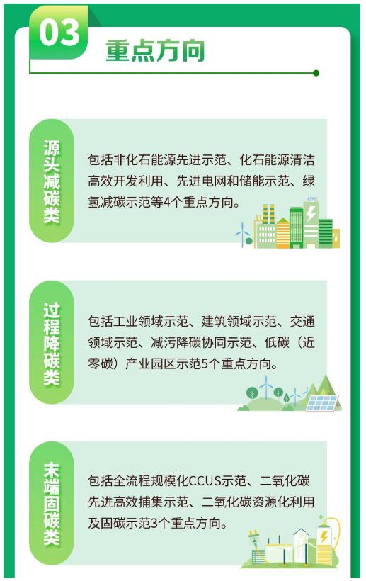 《實(shí)施方案》明確了源頭減碳類、過程降碳類及末端固碳類這三大重點(diǎn)方向,共涉及12項(xiàng)具體內(nèi)容。