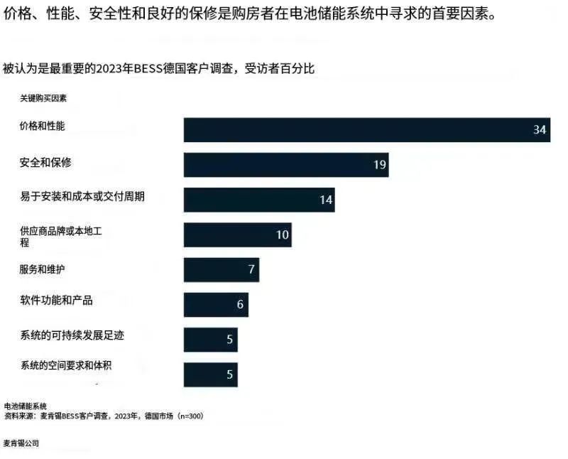 定制產(chǎn)品將幫助住宅客戶實現(xiàn)自給自足、優(yōu)化自耗和降低峰值功耗等目標(biāo),這意味著該領(lǐng)域?qū)碛懈叩睦麧?。在對替代能源購買的消費(fèi)者調(diào)查中表明,用戶對電化學(xué)儲能產(chǎn)品的興趣將歸結(jié)為幾個因素,首先是價格、安全性和易于安裝等。