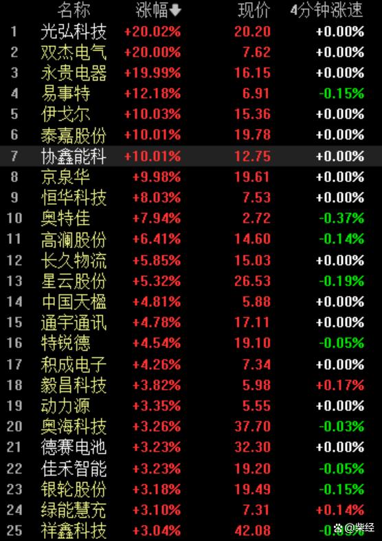 從個股來看,光弘科技(300735.SZ)、雙杰電氣(300444.SZ)、永貴電器(300351.SZ)、易事特(300376.SZ)、伊戈爾(002922.SZ)、泰嘉股份(002843.SZ)、協鑫能科(002015.SZ)等近十個股票相繼漲停。