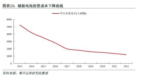 在持續(xù)技術(shù)研發(fā)投入和規(guī)模效應(yīng)下,儲(chǔ)能成本快速下降。以鋰電池儲(chǔ)能為例,得益于新能源汽車(chē)和儲(chǔ)能行業(yè)共同發(fā)展,鋰電池儲(chǔ)能成本以年均15%的速度下降,2013年鋰電儲(chǔ)能建設(shè)成本約為4.5-6.0元/Wh,2017年成本降至1.6-2.0元/Wh,近兩年受上游鋰價(jià)上漲影響,鋰電儲(chǔ)能成本降幅放緩,2023年上半年鋰電儲(chǔ)能成本約為1.24-1.61元/Wh。