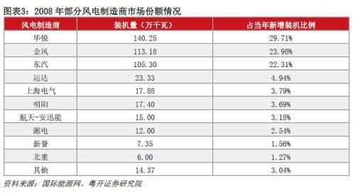 乘著風(fēng)電行業(yè)快速發(fā)展的契機(jī),國(guó)內(nèi)領(lǐng)頭風(fēng)電制造商占有巨大市場(chǎng)份額。以彼時(shí)的風(fēng)電龍頭企業(yè)華銳科技為例,2008年華銳裝機(jī)新增140.25萬(wàn)千瓦,占據(jù)了當(dāng)年全國(guó)新增裝機(jī)的29.8%。