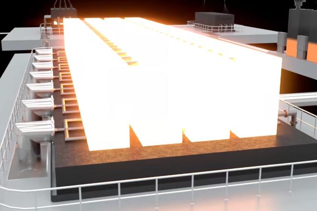 當(dāng)能量被收集時,液態(tài)錫從大約2400°C下降到1900°C(4350°F到3450°F),當(dāng)能量可用時,它被送回加熱元件“充電”。