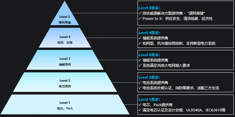 第一層是電芯和PACK提供商,主要聚焦產(chǎn)品性能提升和認(rèn)證的準(zhǔn)入,通過海外市場(chǎng)認(rèn)證,就可以供應(yīng)給系統(tǒng)集成商;第二層是電池系統(tǒng)提供商,聚焦交流系統(tǒng)的適配和產(chǎn)品標(biāo)準(zhǔn)化,在通過認(rèn)證之外,還要做好安全和消防等方面的設(shè)計(jì),主要面向還是系統(tǒng)集成商;第三層次是儲(chǔ)能系統(tǒng)供應(yīng)商,需要在電網(wǎng)準(zhǔn)入、后期運(yùn)維兩個(gè)方面滿要求。