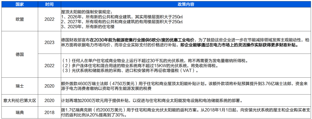 圖:歐洲部分國(guó)家和地區(qū)工商業(yè)儲(chǔ)能補(bǔ)貼政策