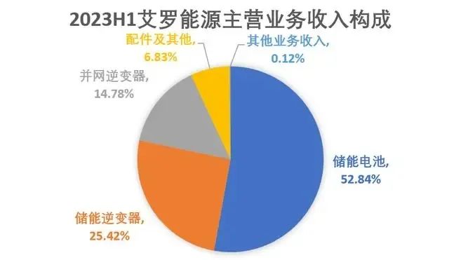 根據(jù)招股書披露,艾羅能源的主營業(yè)務(wù)結(jié)構(gòu)如下圖所示,2023年1-6月公司各項產(chǎn)品中儲能逆變器收入占比25.42%;儲能電池收入占比52.84%,并網(wǎng)逆變器收入占比14.78%,配件及其他收入占比6.83%。