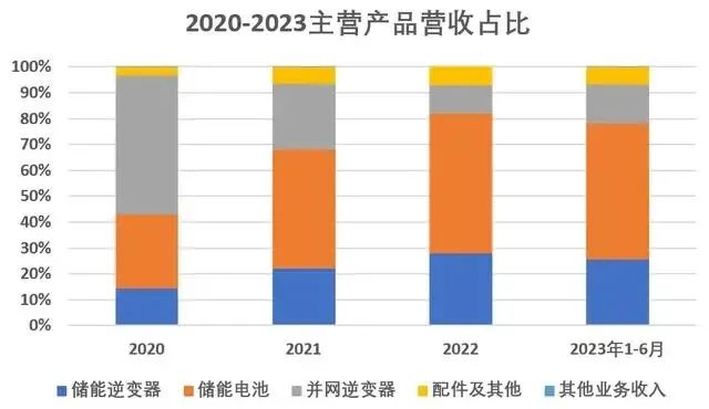 值得注意的是,2020年公司儲能業(yè)務(wù)占比尚未如此之高。2020年并網(wǎng)逆變器產(chǎn)品占總營收的53.85%,2021年公司明顯調(diào)整了產(chǎn)品側(cè)重,減少并網(wǎng)逆變器的份額,著重投入儲能電池和儲能逆變器領(lǐng)域,業(yè)務(wù)發(fā)展更聚焦。