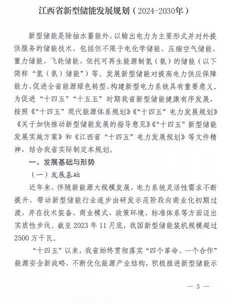 1月9日,江西省能源局于印發(fā)了《江西省新型儲能發(fā)展規(guī)劃(2024-2030年)》(以下簡稱《發(fā)展規(guī)劃》)。