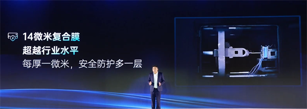 在安全防護方面,億緯鋰能也有多重創(chuàng)新設計,首先在電池隔膜方面選擇了14微米復合膜,超越行業(yè)水平。與此同時,億緯還開發(fā)了具有熱關斷的效應的特殊隔膜涂層,當溫度達到臨界值,涂層顆粒會融化關斷鋰離子的遷移,從源頭阻斷電芯熱失控的發(fā)生。