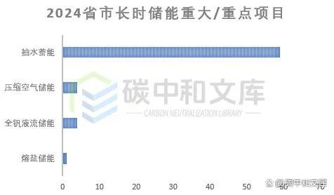 而在長(zhǎng)時(shí)儲(chǔ)能中,抽水蓄能項(xiàng)目最多,59項(xiàng),總占長(zhǎng)時(shí)儲(chǔ)項(xiàng)目的86.8%,其次是全釩液流儲(chǔ)能和壓縮空氣儲(chǔ)能各4項(xiàng),其中全釩液流儲(chǔ)能項(xiàng)目均來(lái)自四川省,而熔鹽儲(chǔ)能項(xiàng)目最少,僅有1項(xiàng),來(lái)自山東省。