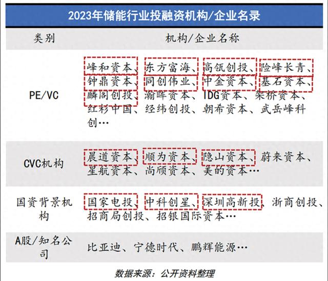 機(jī)構(gòu)入局者眾多,資金結(jié)構(gòu)豐富。過(guò)去一年,儲(chǔ)能行業(yè)的投資方不乏高瓴創(chuàng)投、同創(chuàng)偉業(yè)、中金資本(601995.SH)、IDG資本、春華資本等知名機(jī)構(gòu),也有蔚來(lái)資本、尚頎資本等產(chǎn)業(yè)基金,以及寧德時(shí)代、比亞迪(002594.SZ)等上市公司(具體見(jiàn)圖1)。