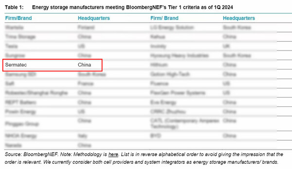 采日能源入選彭博新能源財經(jīng)一級儲能制造商榜單