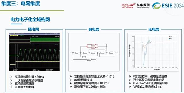 第三個創(chuàng)新維度就是電網(wǎng)側?,F(xiàn)在的電力電子化,不管是光伏也好,儲能也好,對電網(wǎng)提出很大挑戰(zhàn)。當前的一個構網(wǎng),我們提出在強電網(wǎng)、弱電網(wǎng)甚至無電網(wǎng)的情況下面,新型儲能如何適應電網(wǎng)的各種需求。