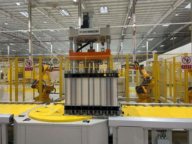 緯景儲能珠海“超G工廠”生產線上的機械手臂正在工作。中青報·中青網見習記者 賈驥業(yè)/攝