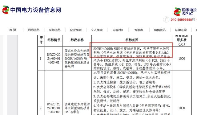 除了單采314Ah電芯外,Q2已多次出現(xiàn)對314Ah電芯單體容量要求的儲能系統(tǒng)項目。4月16日,運達(dá)股份發(fā)布1500V液冷儲能系統(tǒng)項目框采,明確儲能電池單體為314Ah電池;4月18日,興泰公司發(fā)布110MW/240MW釩鋰結(jié)合電網(wǎng)側(cè)獨立儲能電站項目,要求采用單體磷酸鐵鋰電芯容量為314Ah;5月10日,國家電投東方能源海興新型儲能項目200MW/400MWh磷酸鐵鋰儲能系統(tǒng)設(shè)備采購招標(biāo)公告發(fā)布,明確要求儲能系統(tǒng)電池單體的標(biāo)稱容量≥314Ah;5月14日,中國石油濟柴動力發(fā)布5MWh液冷儲能系統(tǒng)招標(biāo)公告,明確指出電池采用不低于314Ah的磷酸鐵鋰電池……