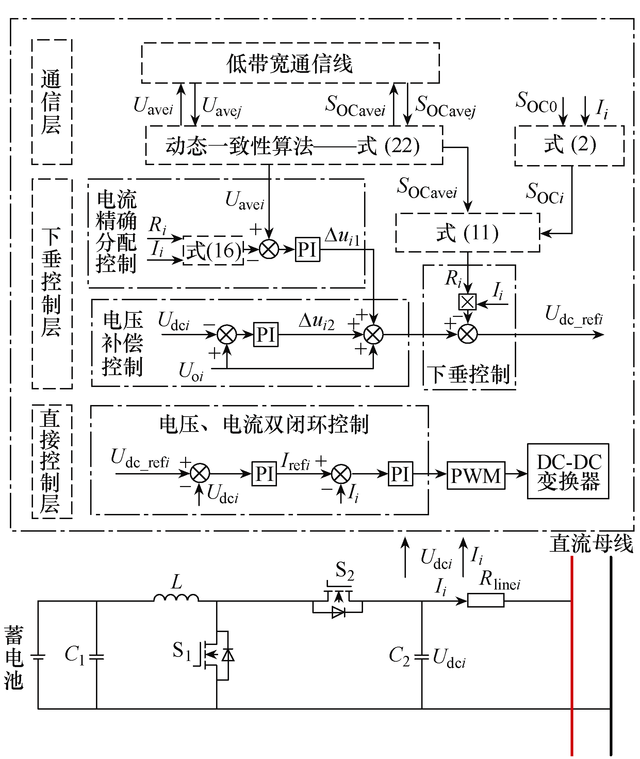 他們指出,以改變下垂系數(shù)為基礎(chǔ),通過前期控制因子調(diào)節(jié)系統(tǒng)最大輸出功率,后期加速因子放大均衡后期荷電狀態(tài)的差值,能夠達(dá)到加快荷電狀態(tài)均衡的目的。另外,引入容量權(quán)重因子,合理分配不同容量儲能單元的功率,使其趨于容量比,旨在有效彌補(bǔ)各儲能單元間的容量差異,有助于確保各個儲能單元在充電和放電過程中的合理參與,提高系統(tǒng)的整體效能和使用壽命。