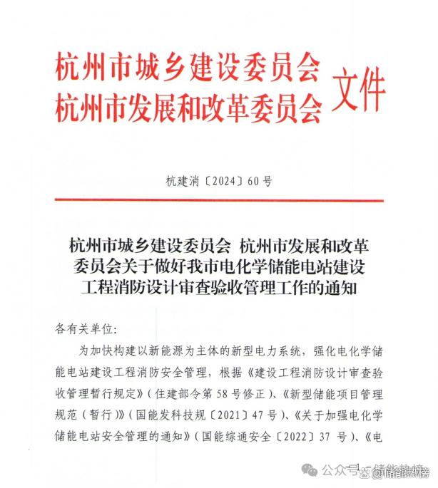 就在上個月,杭州兩部門也聯(lián)合發(fā)布了《關于做好我市電化學儲能電站建設工程消防設計審查驗收管理工作的通知》,整個浙江省的儲能消防驗收都在逐步收緊,這一動向值得產(chǎn)業(yè)人士重視。