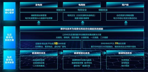 弘正儲能自成立以來,就把數(shù)字化作為儲能解決方案的切入點,形成了能源調(diào)控、能源智能化和能源預測三大數(shù)字化儲能體系,結合自主研發(fā)的EMS能量管理系統(tǒng)強大的數(shù)據(jù)采集、轉(zhuǎn)發(fā)及邊緣計算能力,能夠充分滿足虛擬電廠對站點的數(shù)據(jù)采集、策略控制的各類要求,保障儲能設備能夠順暢地接入虛擬電廠平臺。