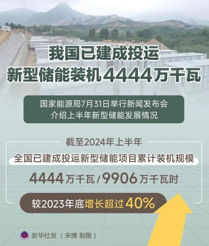 我國(guó)已建成投運(yùn)新型儲(chǔ)能裝機(jī)4444萬(wàn)千瓦