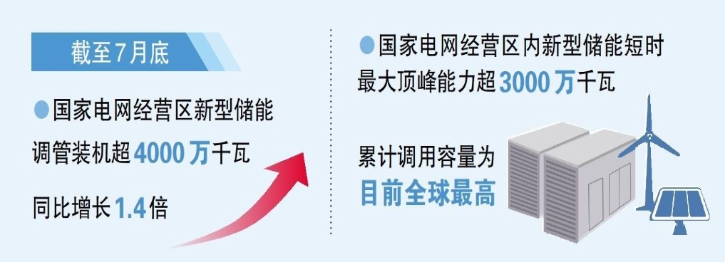 在國家政策和技術創(chuàng)新驅動下,我國新型儲能呈現(xiàn)規(guī)?;l(fā)展趨勢。截至7月底,國家電網(wǎng)有限公司經(jīng)營區(qū)內新型儲能調管裝機超4000萬千瓦,同比增長1.4倍。公司做好新型儲能并網(wǎng)及調度運行,服務新型儲能高質量發(fā)展。