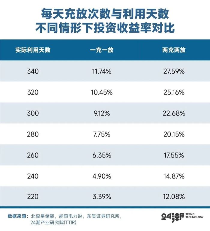 還需要注意的是,據(jù)東吳證券測算,工商儲實際應用中收益率低于理論值,對工商業(yè)業(yè)主吸引力有限。工商儲單個項目功率較大,初始投資成本約上千萬元,此外分時電價政策變化的不確定性、若實際利用天數(shù)較低,收益率將打較大折扣,每天同一充放次數(shù)下,220天利用天數(shù)與340天利用天數(shù)可產(chǎn)生近2倍收益率差異??紤]目前實際利用是一充一放為主,280利用天數(shù)下IRR為7.75%。