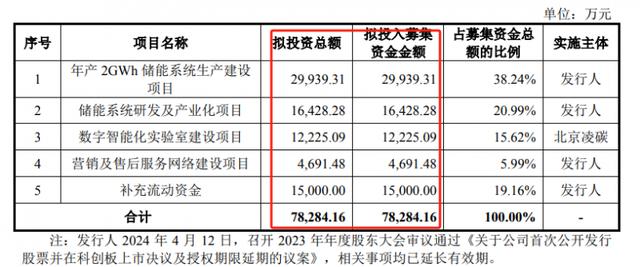其中29939.31萬(wàn)元用于年產(chǎn)2GWh儲(chǔ)能系統(tǒng)生產(chǎn)建設(shè)項(xiàng)目,16428.28萬(wàn)元用于儲(chǔ)能系統(tǒng)研發(fā)及產(chǎn)業(yè)化項(xiàng)目,12225.09萬(wàn)元用于數(shù)字智能化實(shí)驗(yàn)室建設(shè)項(xiàng)目,4691.48萬(wàn)元用于營(yíng)銷(xiāo)及售后服務(wù)網(wǎng)絡(luò)建設(shè)項(xiàng)目,15000萬(wàn)元用于補(bǔ)充流動(dòng)資金。