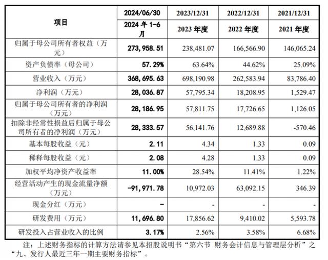 2021年-2024年上半年,其向前五名客戶(hù)合計(jì)的銷(xiāo)售額占營(yíng)業(yè)收入的比例分別為78.16%、83.70%、74.37%和58.43%。