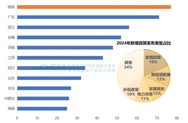 從支持政策看,截至2024年12月底,全國(guó)已累計(jì)發(fā)布2470余項(xiàng)與儲(chǔ)能直接和間接相關(guān)的政策,其中2024年770項(xiàng),是去年同期的1.2倍。從發(fā)展規(guī)劃上看,各地“十四五”儲(chǔ)能發(fā)展累計(jì)目標(biāo)達(dá)到86.6GW,遠(yuǎn)超國(guó)家的40GW目標(biāo)水平,截止到2024年底,8個(gè)省份已經(jīng)完成其“十四五”新型儲(chǔ)能裝機(jī)目標(biāo)。